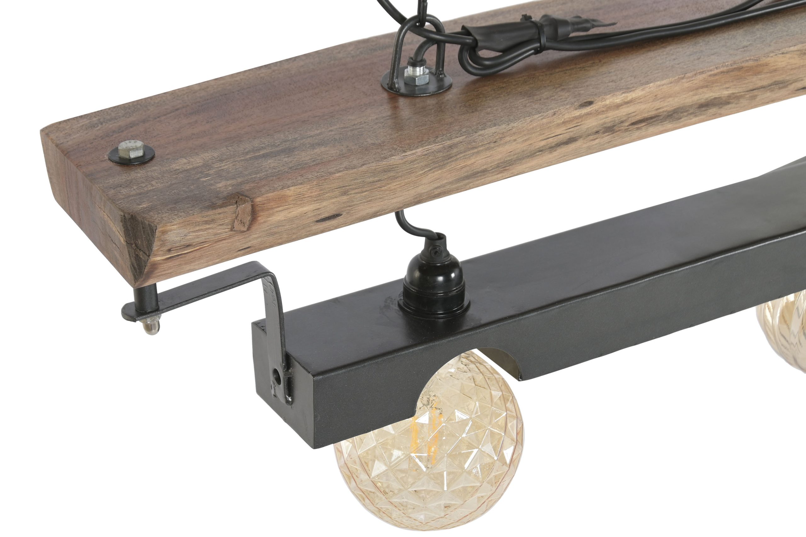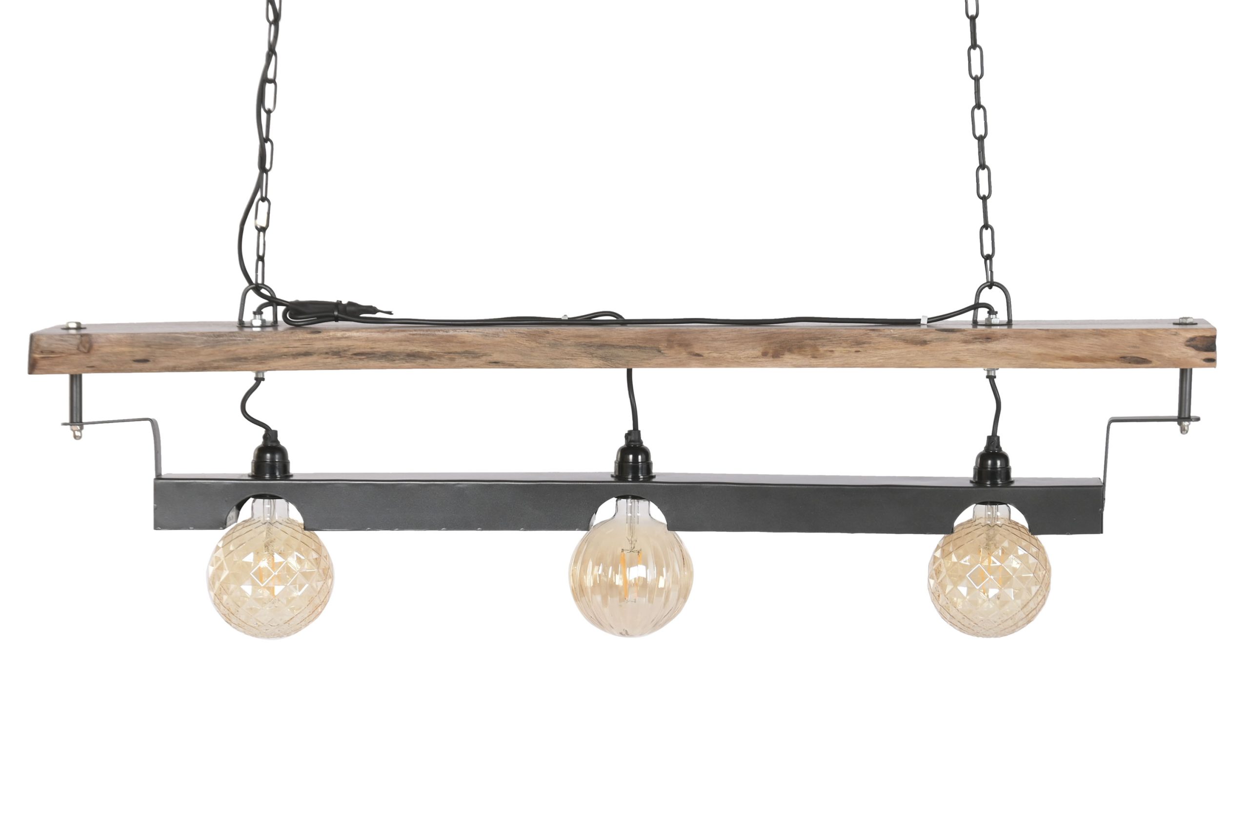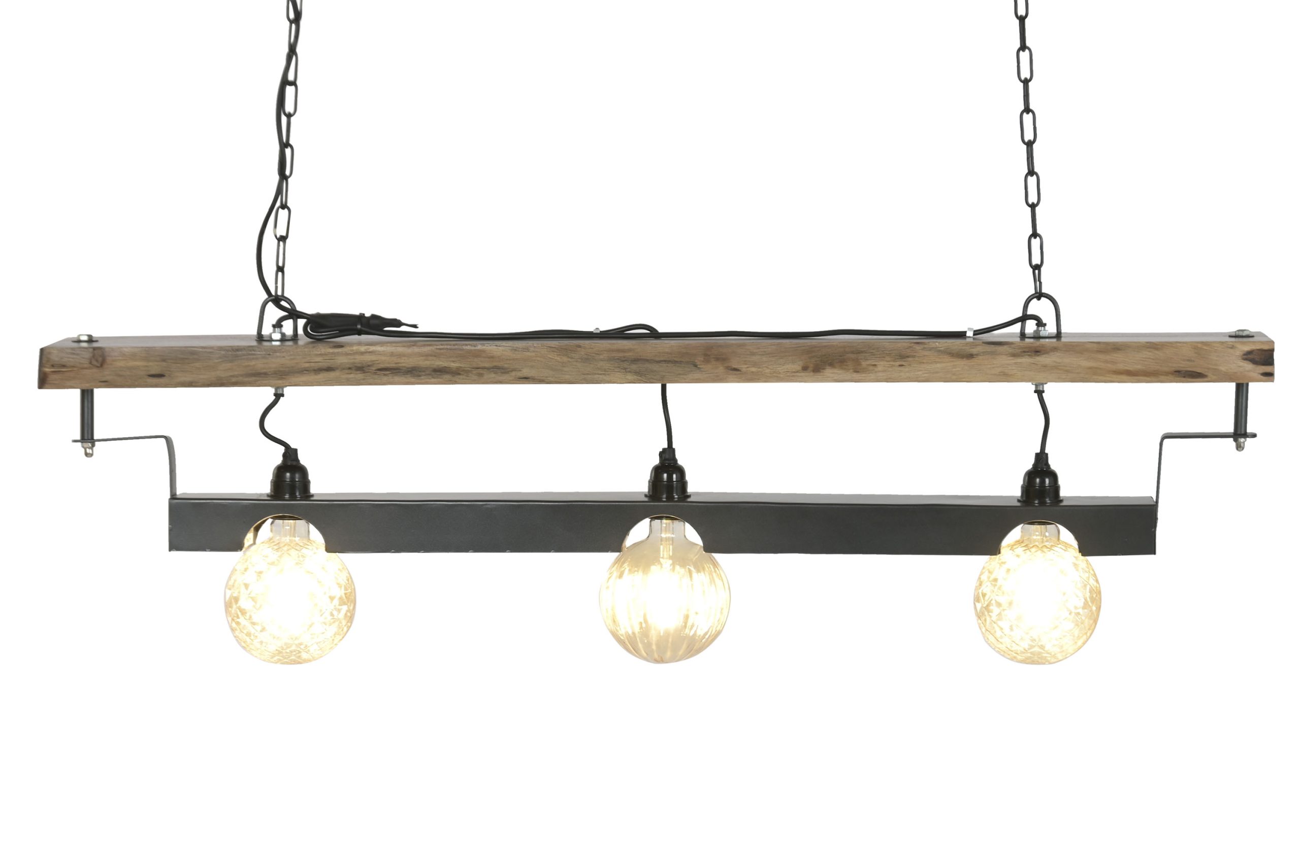 Acacia Wood & Iron Ceiling Lamp – Brown / Black (116 cm)