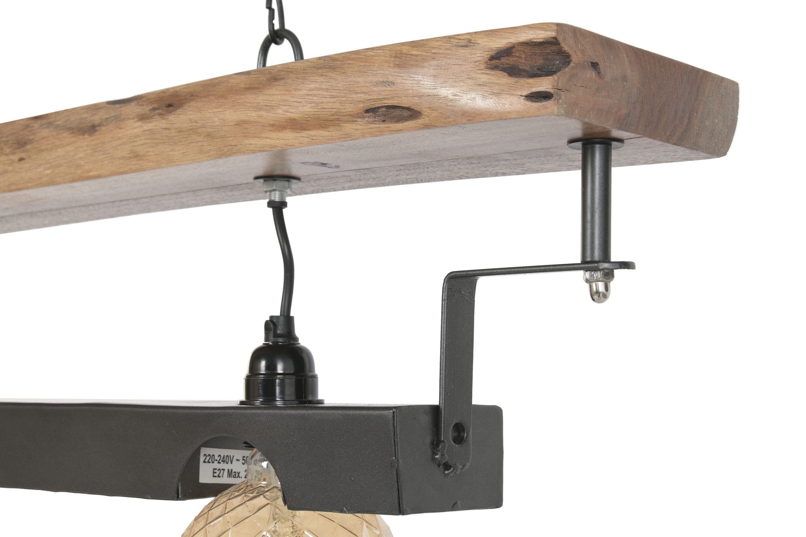 Bring warmth and character to your interior with this distinctive acacia wood and iron ceiling lamp. Combining the natural beauty of solid acacia wood with a contrasting black iron structure, this lighting piece offers a stylish vintage-inspired design that suits both rustic and industrial interiors.