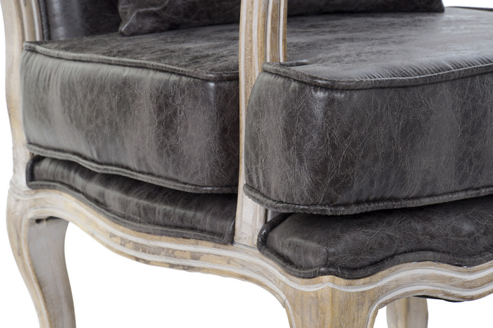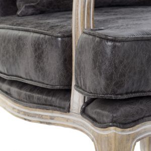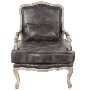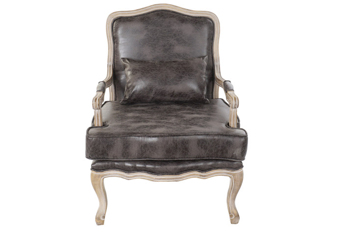 Armchair PU Rubberwood Worn Out Brown