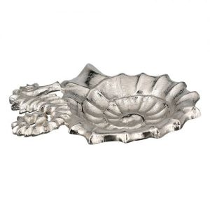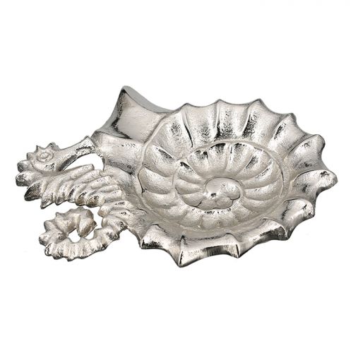 Little Bowl “Seahorse” aluminum. silver. antique look. snail-shaped bowl. inner part with lines – not food safe –