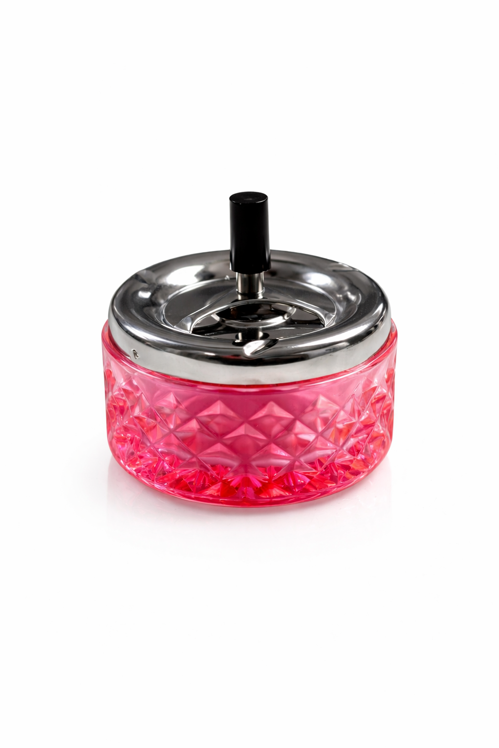 Pink Cut Glass Ashtray with Chrome Lid