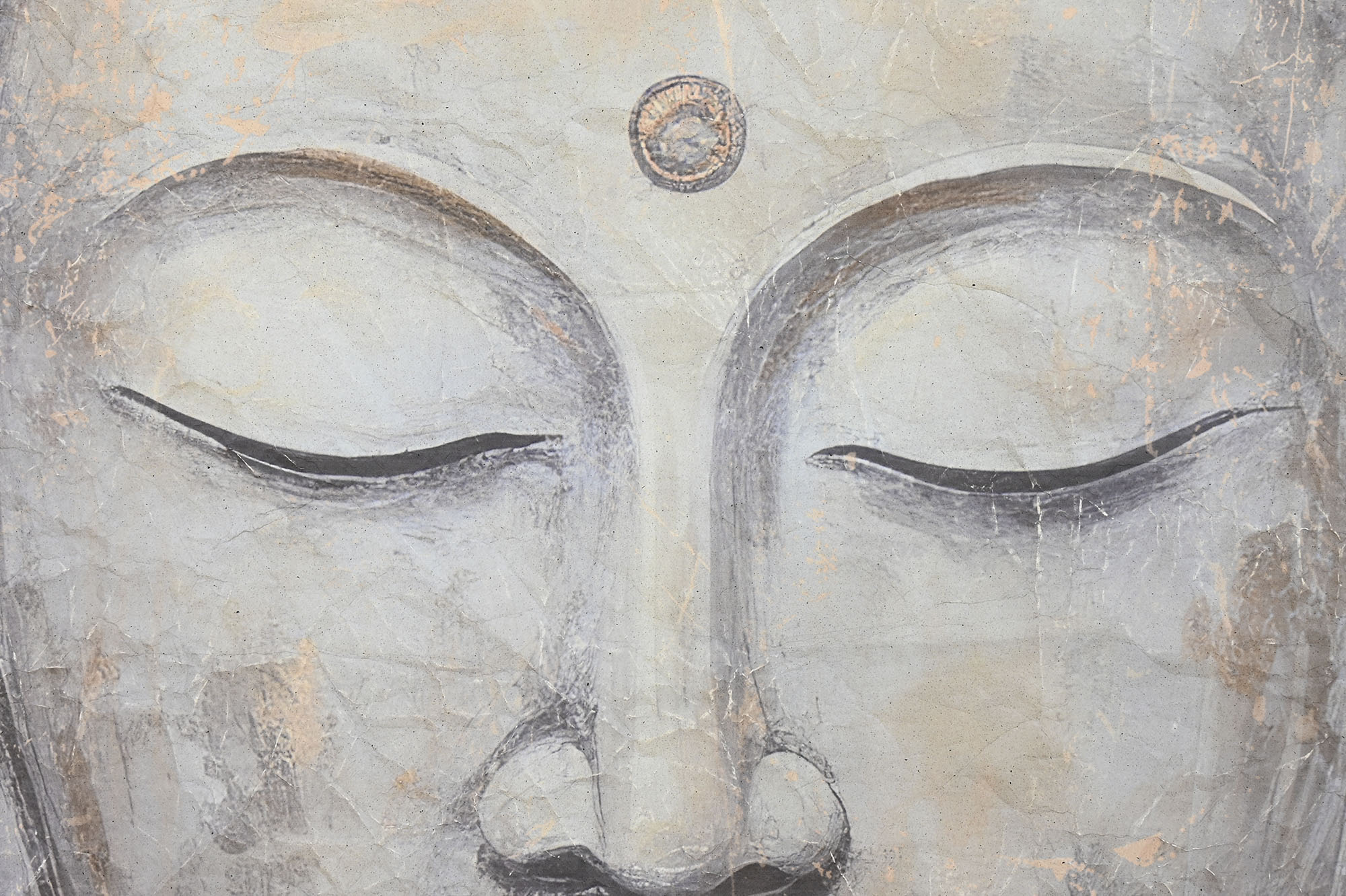 Bring serenity and a touch of the Oriental ambiance into your home with this large Buddha wall art. Designed with a unique worn-out finish, it blends aged texture with calming tones of beige and grey, creating a centerpiece that radiates peace and balance.