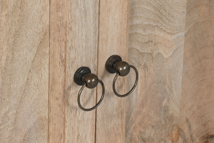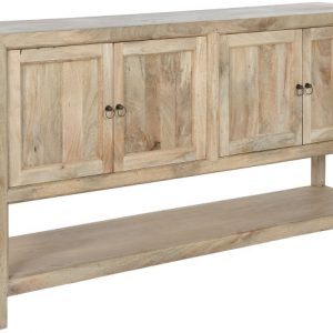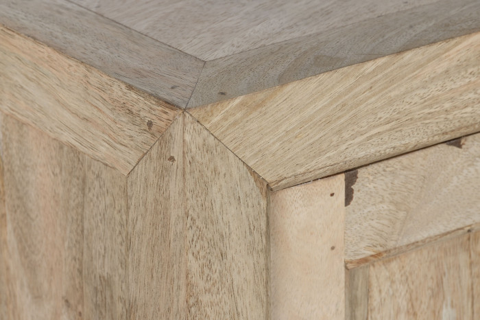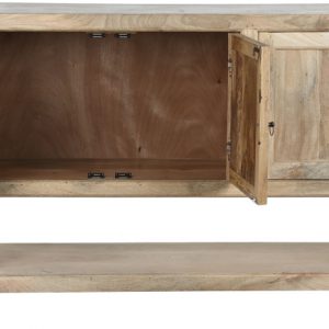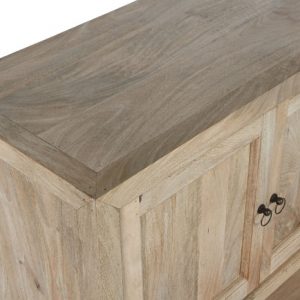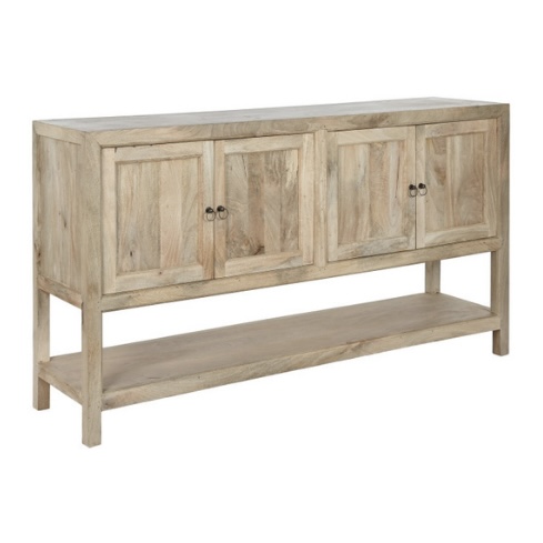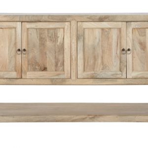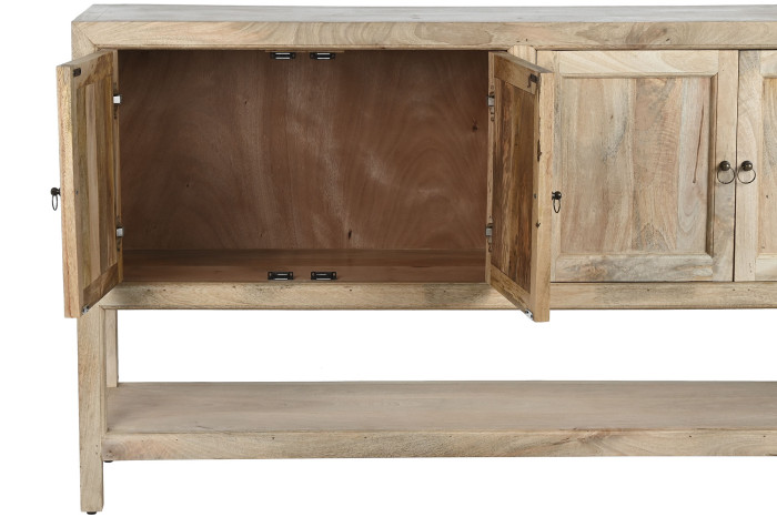 Handcrafted from durable mango wood, each unit showcases unique wood grain patterns and rich tones that make every piece one-of-a-kind. With its generous proportions and sturdy structure, this buffet offers ample surface space for décor while providing practical storage for dining essentials, books, or accessories.