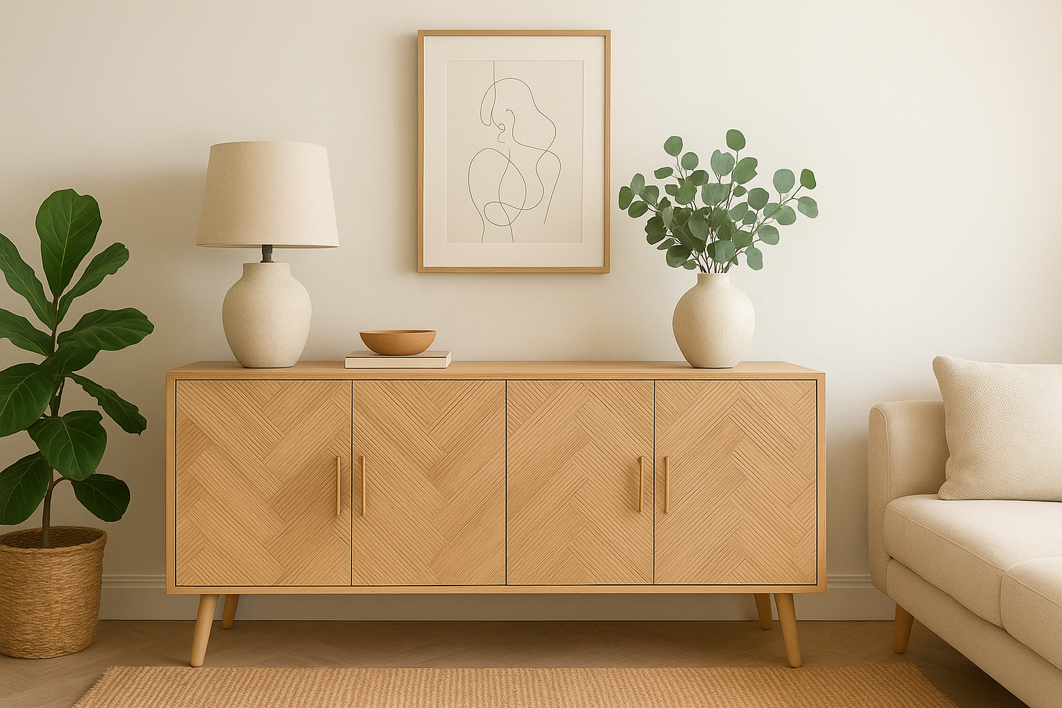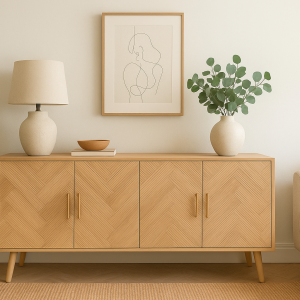 Bring timeless Scandinavian elegance into your home with this beautifully crafted buffet. Made from a combination of Paulownia wood and MDF, it features a natural finish that highlights the warm tones and grain of the wood.