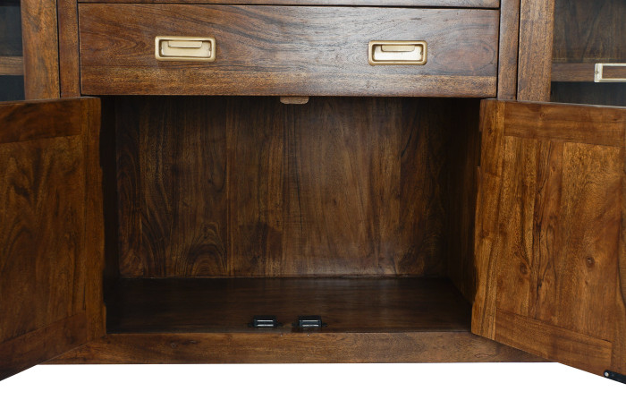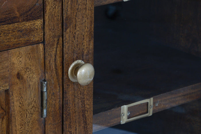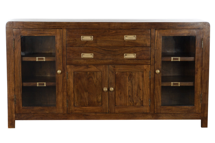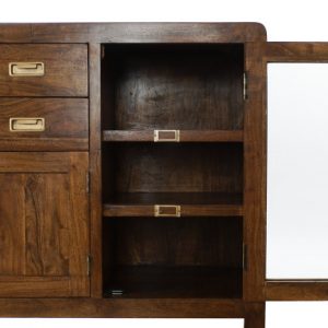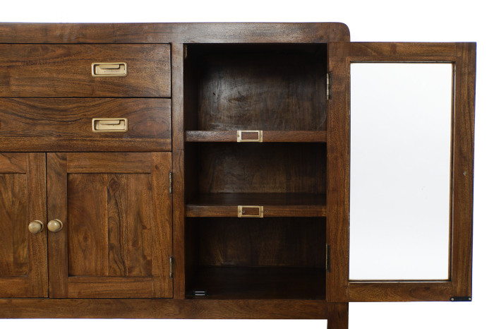 Buffet Side Board Acacia Glass Natural Brown