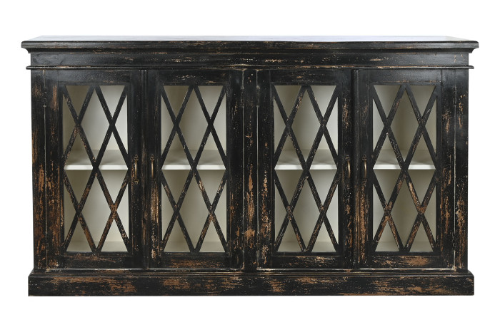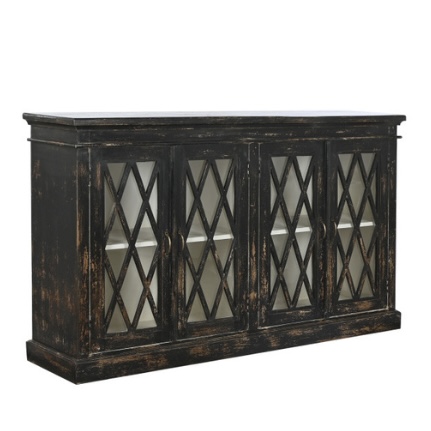 Buffet Wood Glass Antiqued Black
