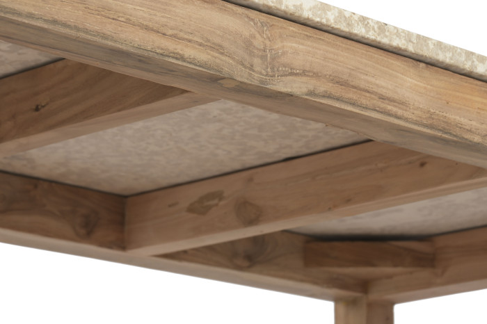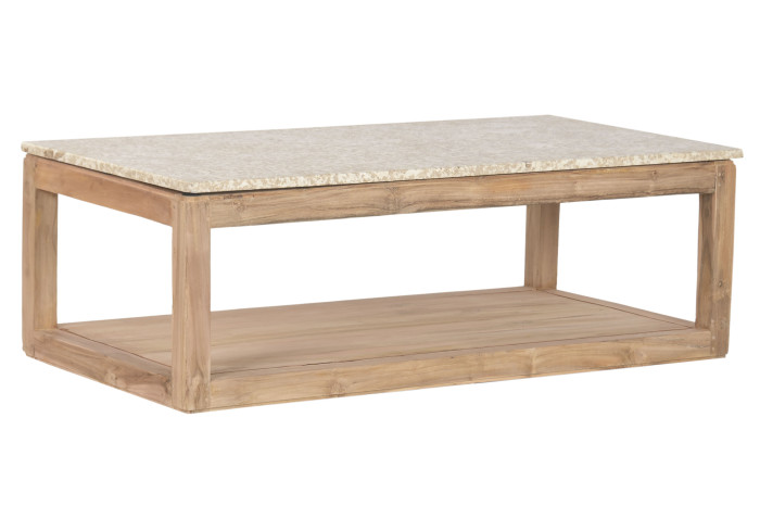 Add natural elegance to your living space with this recycled wood and marble coffee table, a piece that beautifully balances raw authenticity with refined design.