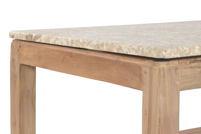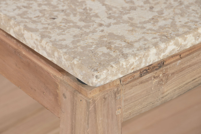 The sturdy recycled wood base highlights natural imperfections and rich textures, bringing warmth and character to your interior. The beige marble top adds a smooth, sophisticated finish, offering a stunning contrast that enhances modern, rustic, or global-inspired spaces.