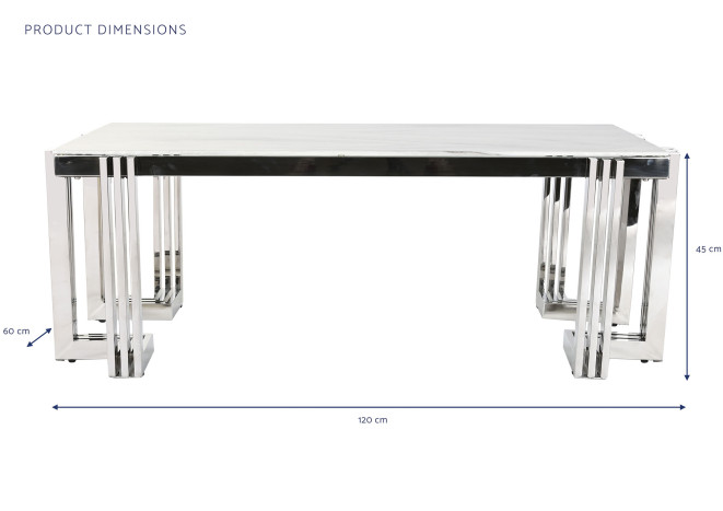 Coffee Table Steel Glass Faux Marble