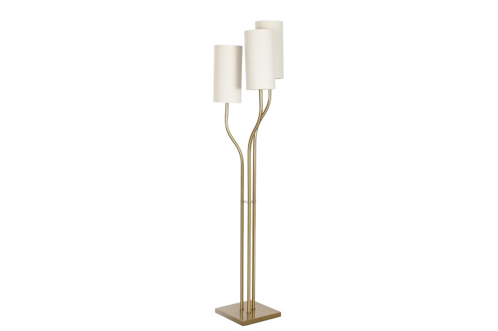 The tall, elegant structure makes it perfect for living rooms, reading corners, or beside a sofa, while the soft linen shades diffuse light beautifully to create a warm and inviting atmosphere. The golden finish adds a refined decorative touch that complements both modern and contemporary interiors.