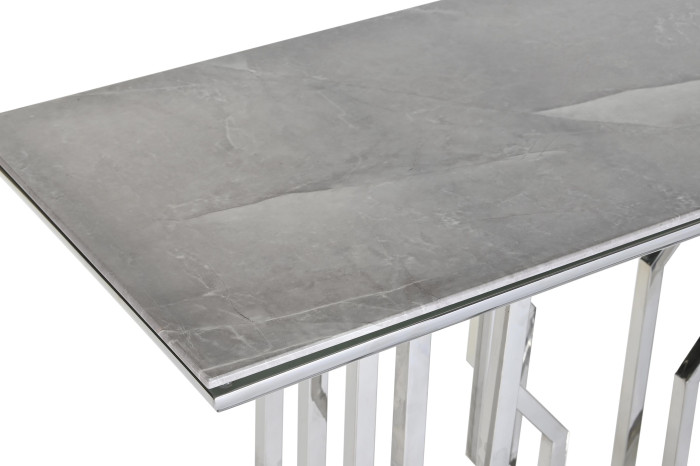 Console Table Steel Glass Faux Marble