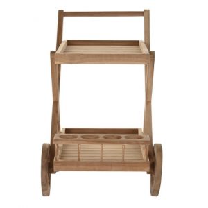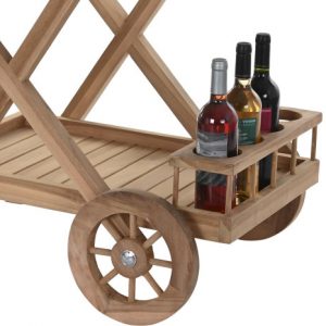 Drinks Trolley Teak Wheel Natural Brown