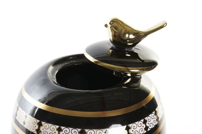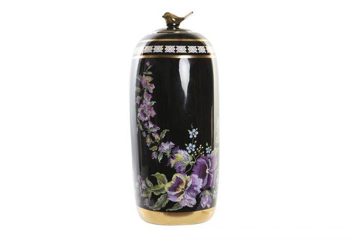 Ginger Jar Porcelain Flowers Black