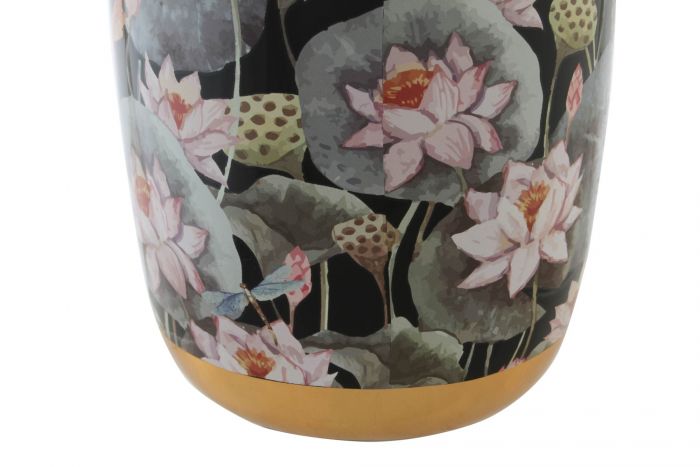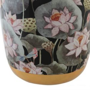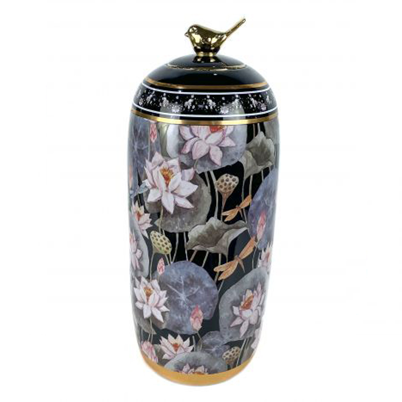 Ginger Jar Porcelain Flowers Black