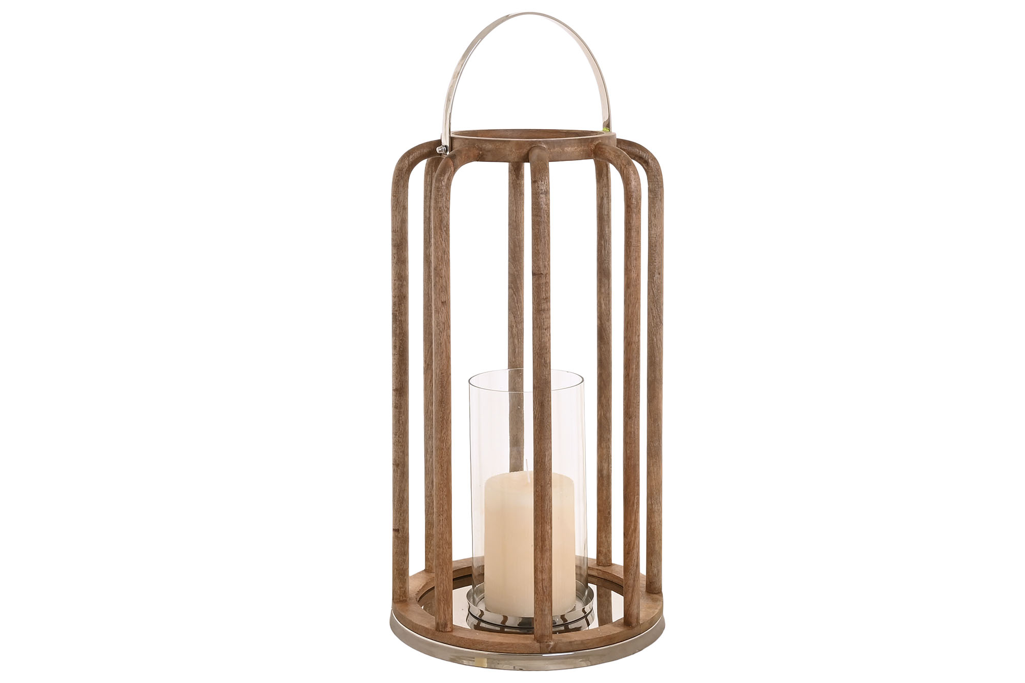 Modern Lantern Mango Wood & Glass Candle Holder – Brown & Silver