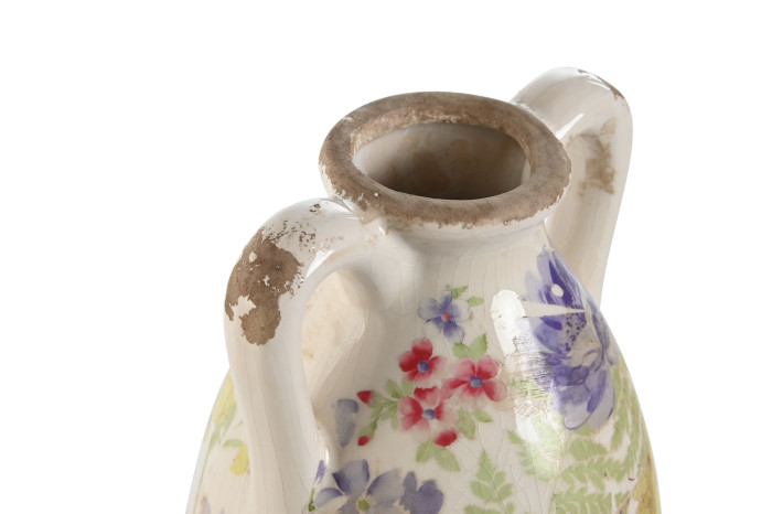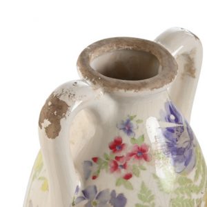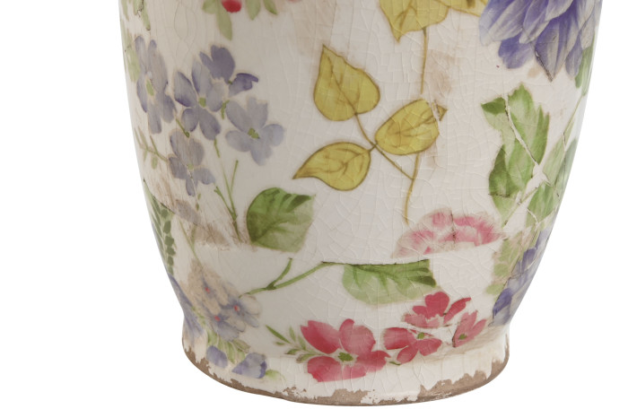 Vase Stoneware Flowers Multicolored
