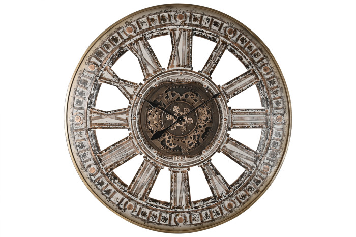 Wall Clock Iron Glass Movement Aged