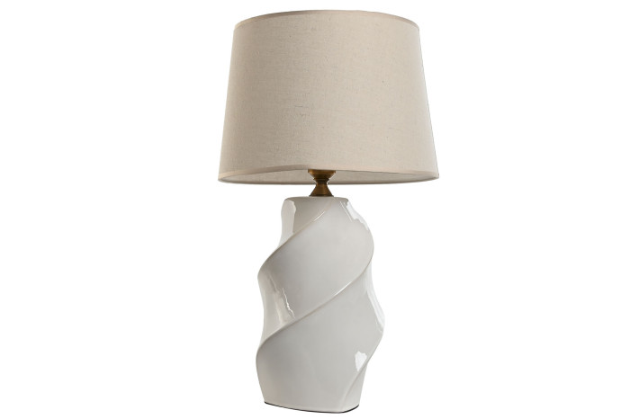 White Porcelain Spiral Table Lamp with Cotton Shade – Urban Style
